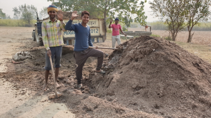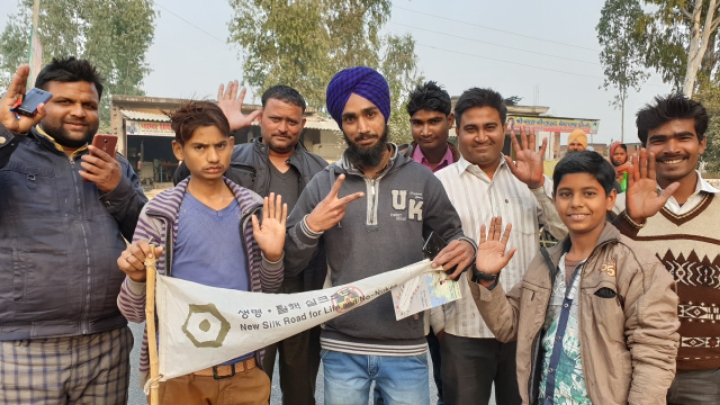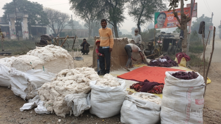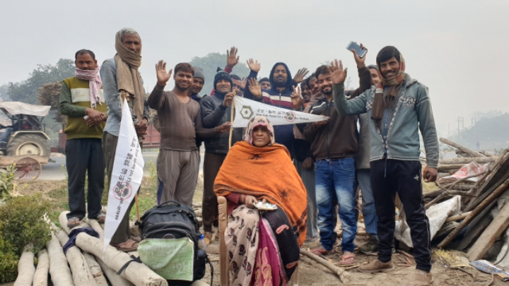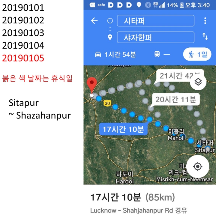 After walking about half way, I am going to move baggage by bus to shelter in Shajahanpur.