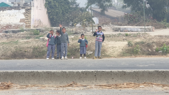 5. I waved to the children going to school. Then they waved back in the other side of the street.
