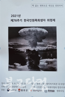 Among the victims of the atomic bombs dropped in Hiroshima and Nagasaki on August 6 and 9, 1945, the number of Korean victims reached 100,000. A memorial ceremony to commemorate the sacrifice was held in Hapcheon a few days ago. It is a commemorative event to inform the Koreans of the atomic bomb victims and to heal the physical and mental suffering they are experiencing.