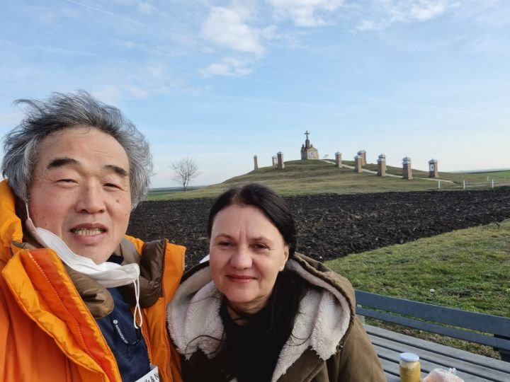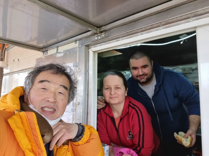 36. I took a selfie with a villager who recognized the traveler and came out of his car.