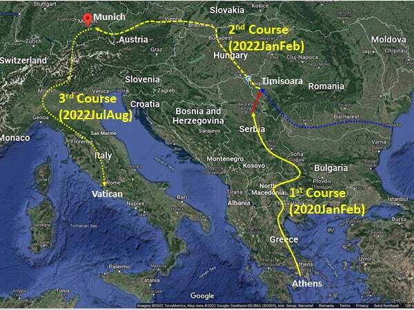 The last two months of pilgrimage conducted in early 2019 covered about 950km course of Greece – North Macedonia – Bulgaria – Serbia. In the two months of 2022, I plan to travel 960km from Romania to Hungary, Slovakia to Austria (Czech Republic) to Germany.