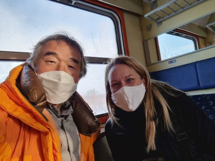 44. I took a selfie with the passenger car manager who sells and checks the ticket.