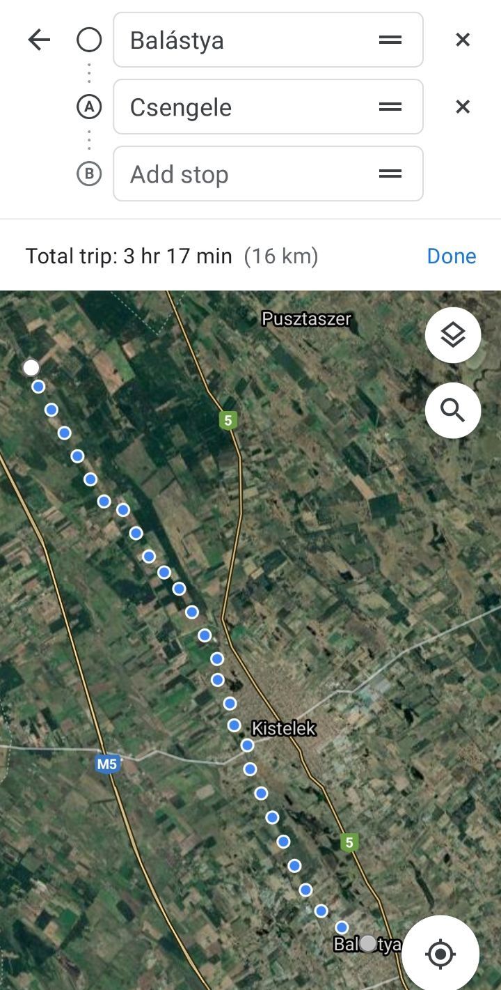 I looked around the area and saw a train station 16km away. When I looked up timetable of train station, I found that train runs frequently. I chose train station as destination. I chose lodging located near the Szeged station. It will be convenient to use train tomorrow. Today’s course was decided finally.