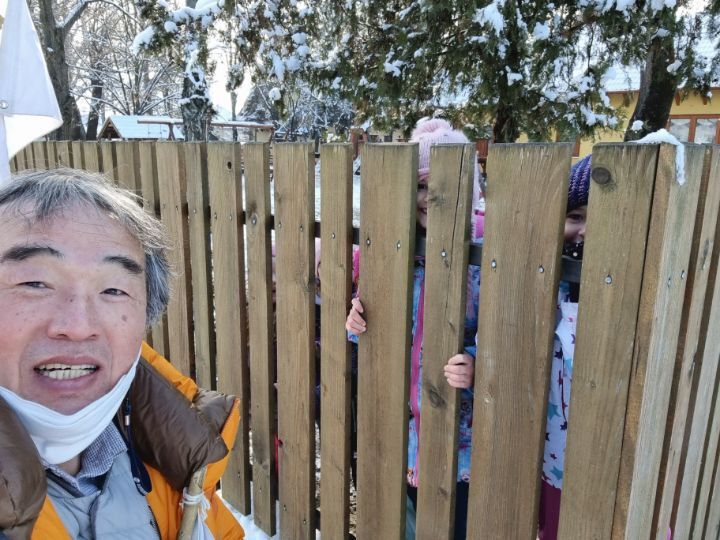 17. Suddenly, the children follow me with cheers. Then they run to the end of the fence competitively and waits for traveler. On the selfie, you can see the children’s eyes through the fence.