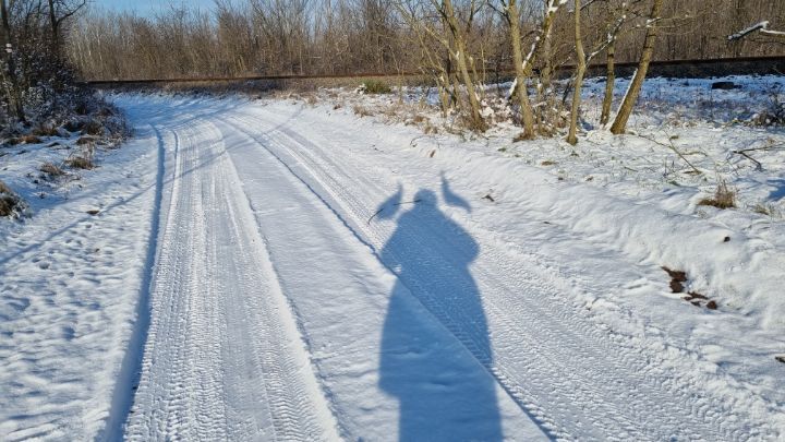 21. From now on, I walk a trail away from the ordinary road. The trail leads to train station.