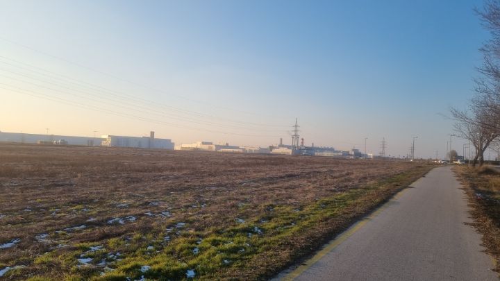 19. A large Mercedes-Benz factory is visible in the distance. Hydrogen energy is important for factories which manufacture commercial vehicles or producing steel. Hydrogen cells has good capability to store energy produced by sunlight. It compensates for the weakness of solar energy. The production intermittence due to daytime production may be compensated. Hydrogen cell has good compatibility with sunlight.