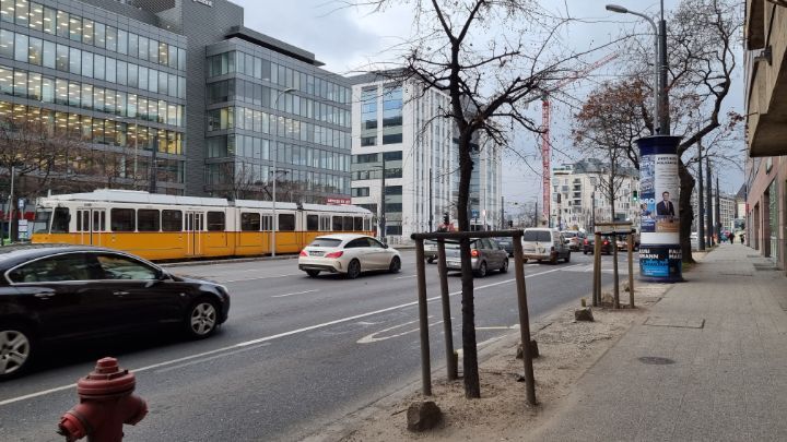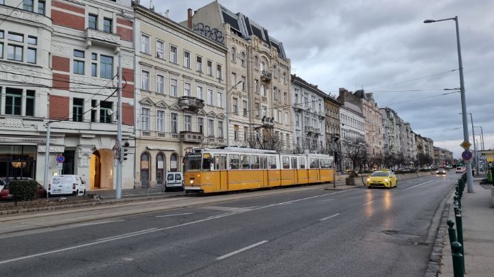 24. I turned around and saw a yellow tram. It is tram that runs frequently only along the Danube River.