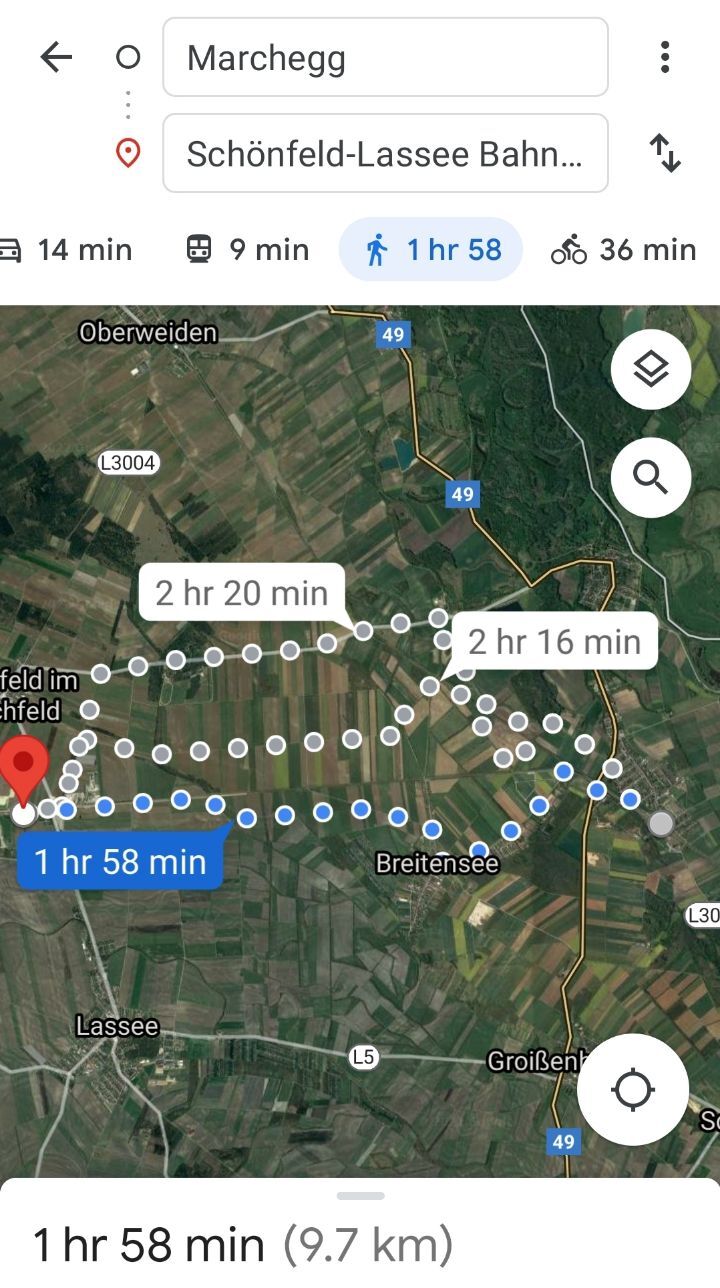 2. I came to Marchegg station where I arrived yesterday. I started to walk at 10:30 a.m.