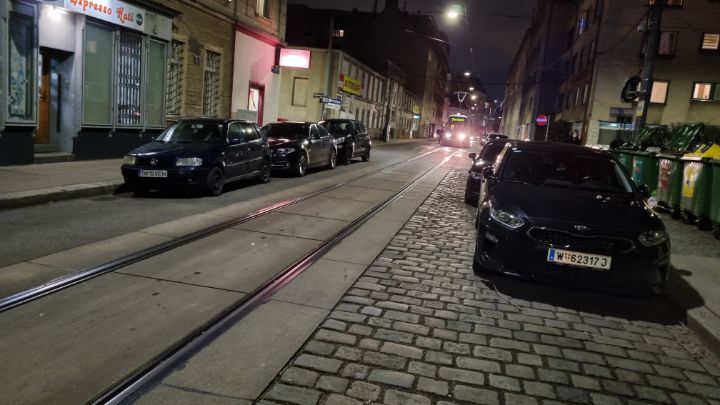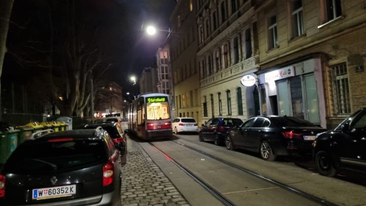 28. I took a tram to go to an unknown residential area. Tram was operated even on a narrow road. A one-way system for tram was adopted.