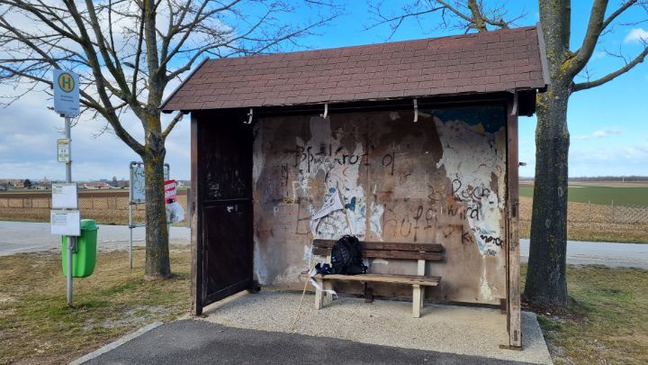 13. I took a short break at the bus stop in the village. Contrary to its appearance, it is a sturdy place built with wood.
