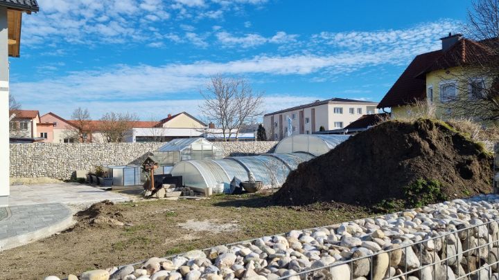 15. Over the common stone wall, compost was piled up in the yard. And there was also a greenhouse.