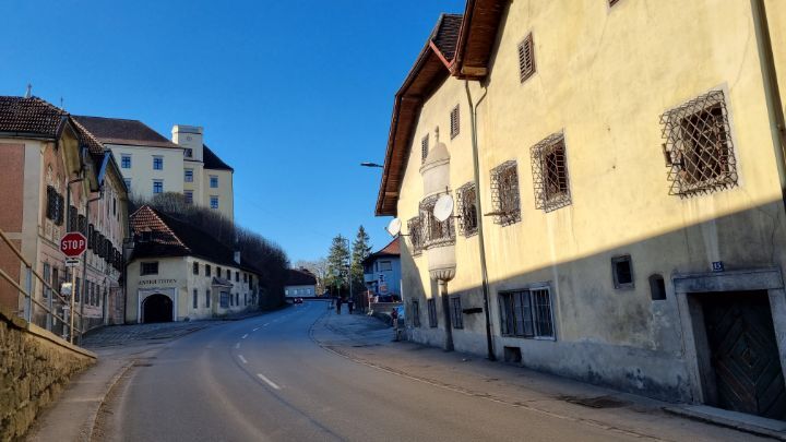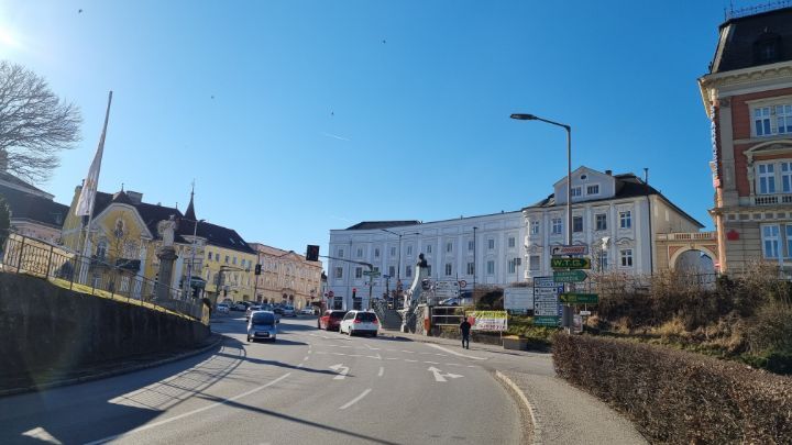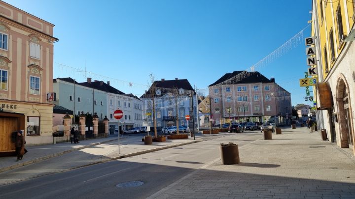 20. The plaza in this village allows transit transportation while keeping the cozy atmosphere of the town.
