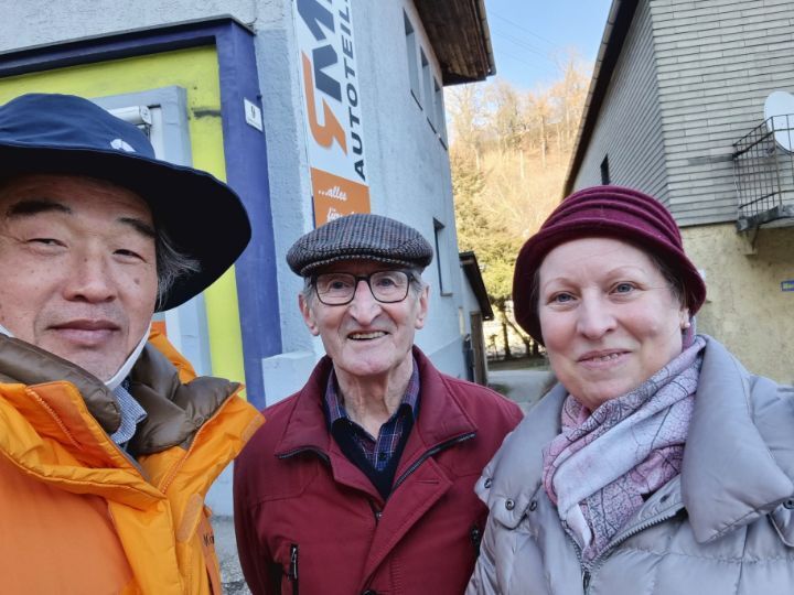 13. When I stopped by a coffee shop, a young clerk showed curiosity to traveler. I explained pilgrimage and she admired. I took a pleasant selfie with her.
