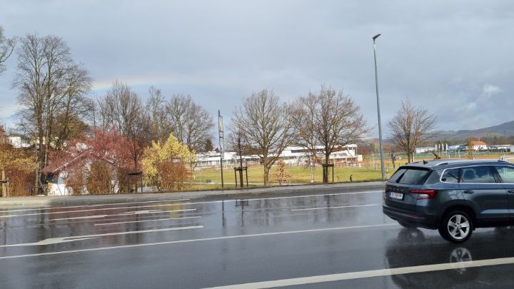 28. As I was waiting under the eaves, I saw a rainbow as it cleared up.