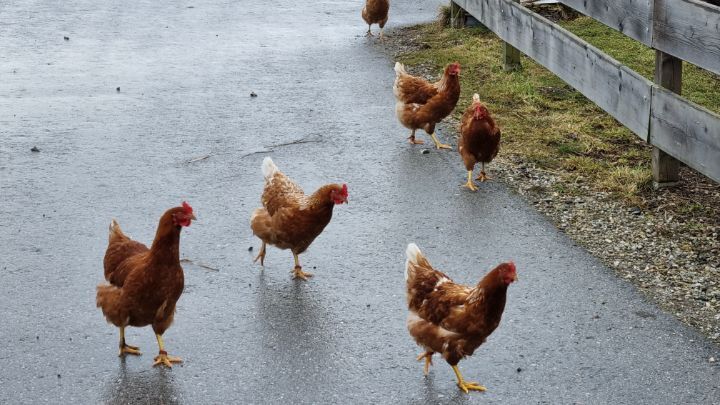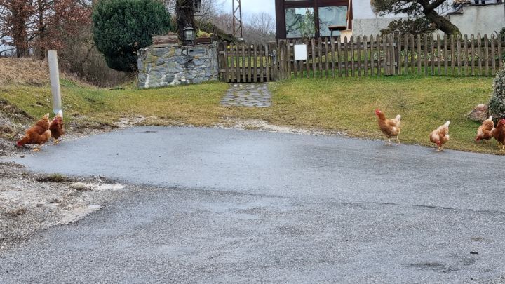 38. The chickens followed the traveler. When I took out the camera, they turned heads slightly.