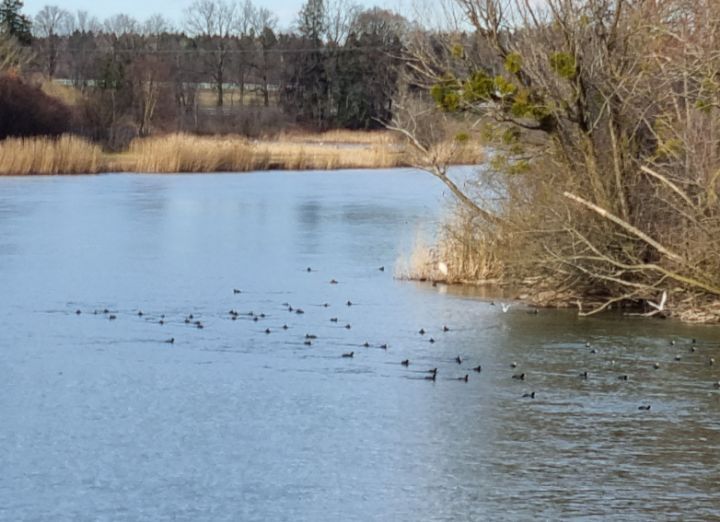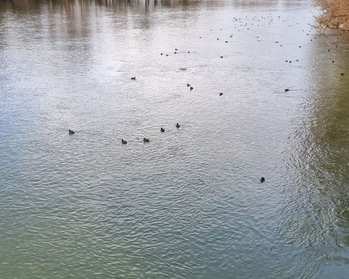 59. I saw a lot of mallard ducks from the bridge where water flows into Traun river.