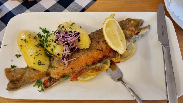 47. For Lunch, I had a fish recommended by the waiter at a restaurant.