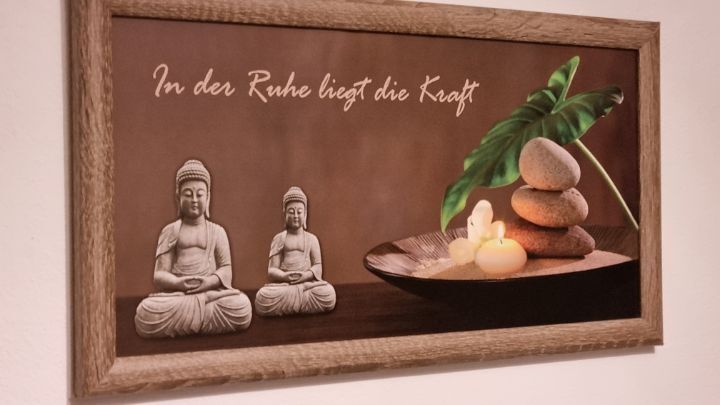 71. A Buddha picture was hung on the wall of the lodging. I don’t know the meaning of the German title, but meditating Buddha catches my eye.