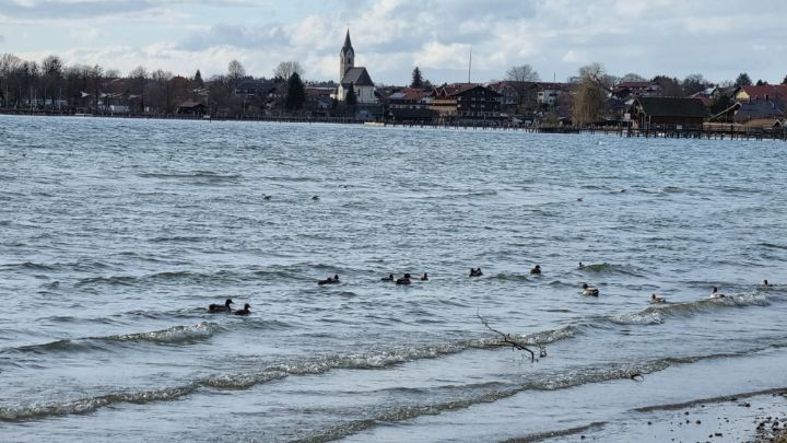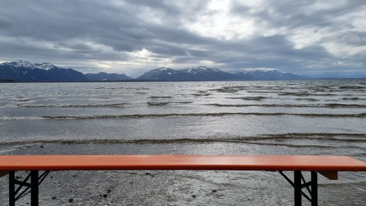 55. I looked at the map of Lake Chiemsee (Kimze in German pronunciation). From the Alps two large rivers flow into the lake. Traun River and Inn River flow out from the lake and join the Danube. The lake is one of Danube’s water sources.