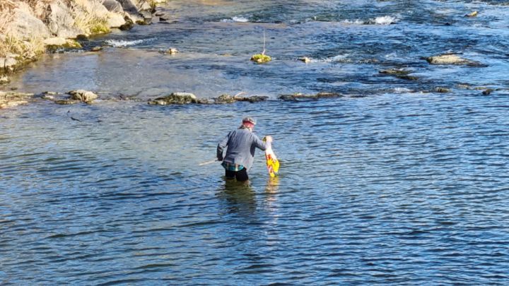 44. Mehlo rolled up his pants and went into the cold water,