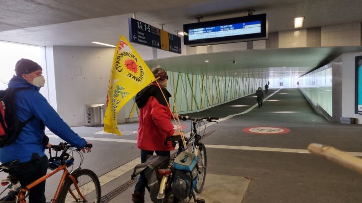 35. These two men with bicycle led me to underpass.