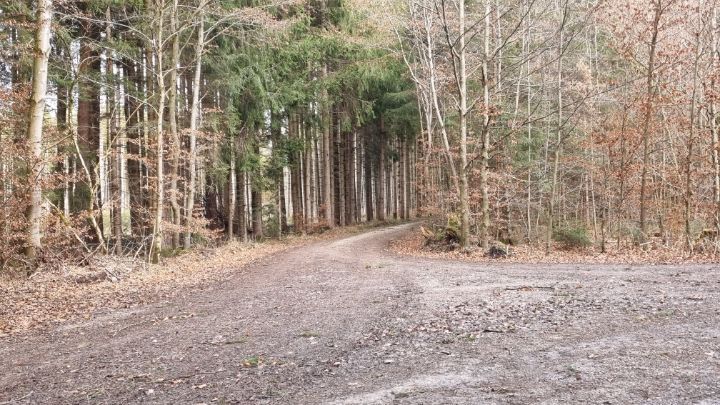 44. We entered a forest path near our destination.