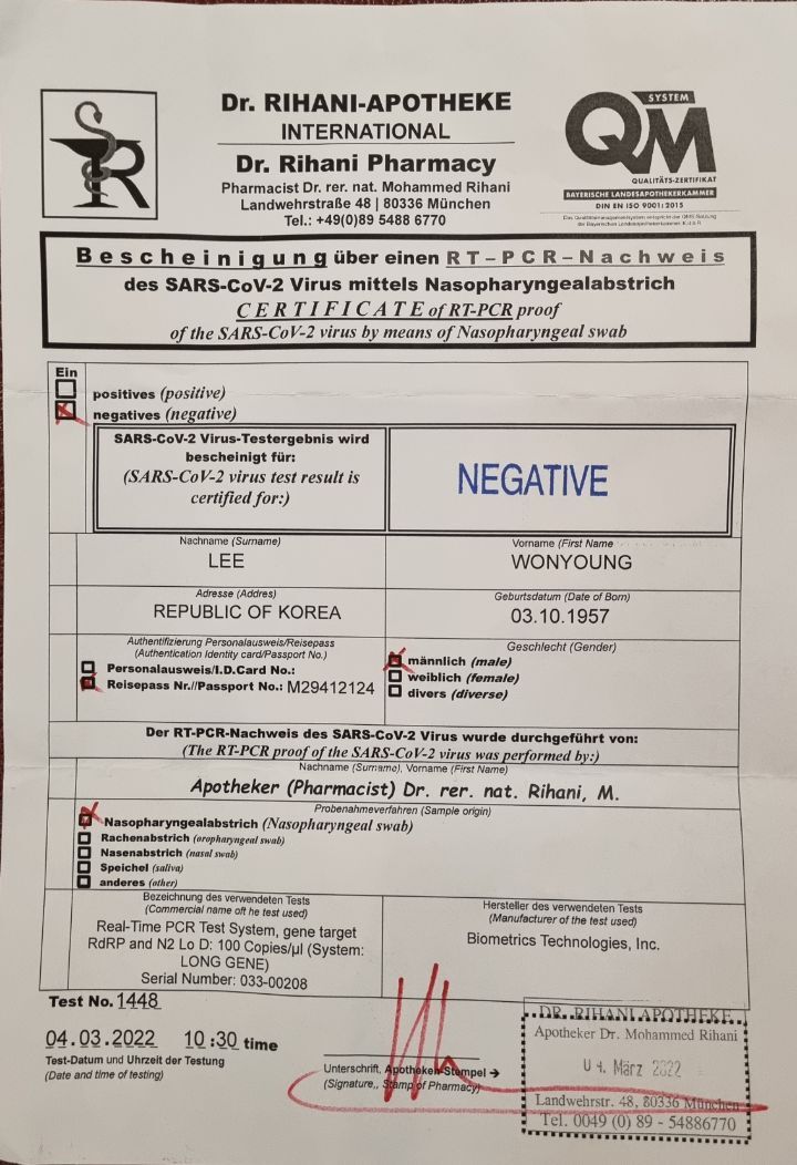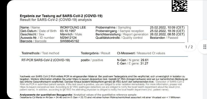 16. The problem broke out in the morning of the next day after another rest day. I left the hotel and headed to airport for my return trip to home. Then, I got positive response in PCR test which I received on previous day from German quarantine authority.