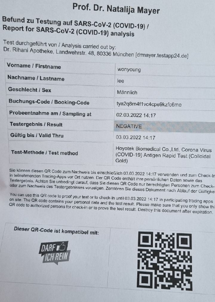 17. First of all, I informed those who were in direct contact with me first, and recommended test respectively. They are 7~8 people in total. Fortunately, no one received ‘positive’. Judging from the result, it seems that I was asymptomatic quite a while ago. But I had to follow the regulations. I spent a restless day as I was engrossed in quarantine and countermeasures. And I realized that Germany recommend self-quarantine unlike us. With three-time vaccination certificate, I was able to find a cheap hotel near the central station where I could stay.
