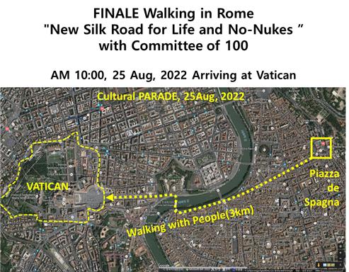 A) If the pilgrimage goes smoothly and will arrive in Rome around August 23rd, on the 25th, we will go to St. Peter’s Square in the Vatican on foot along with the 100 members of LIFEROAD who came to Rome as shown in the picture below.