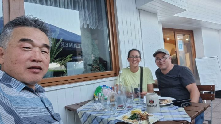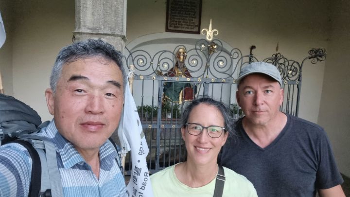 47. We went to a church where St. Ulrich, catholic saint, is worshiped. I took a selfie of three people.