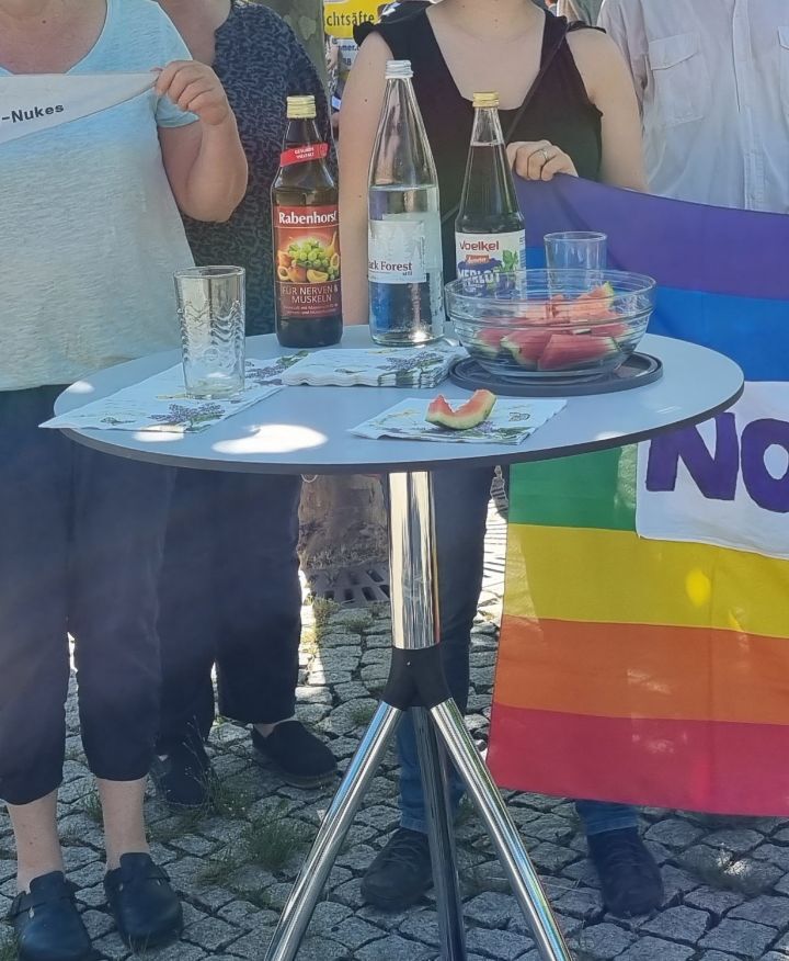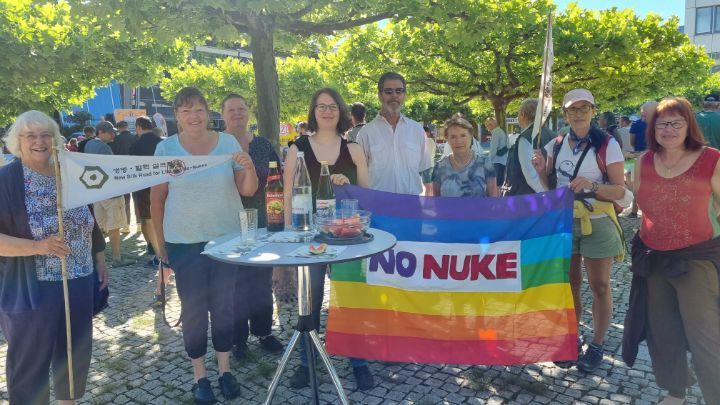 2. Natalie Rehm standing in the left side of this photo brought the NO NUKE insignia she made yesterday.