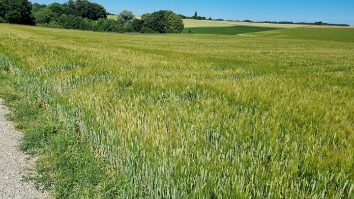 42. I saw barley field while walking alone in remaining section. It is also impressive that barley is not harvested until the end of June. The barley receives plenty of sunlight during harvest period because the sunset is late. This may be the reason why German beer tastes so good.