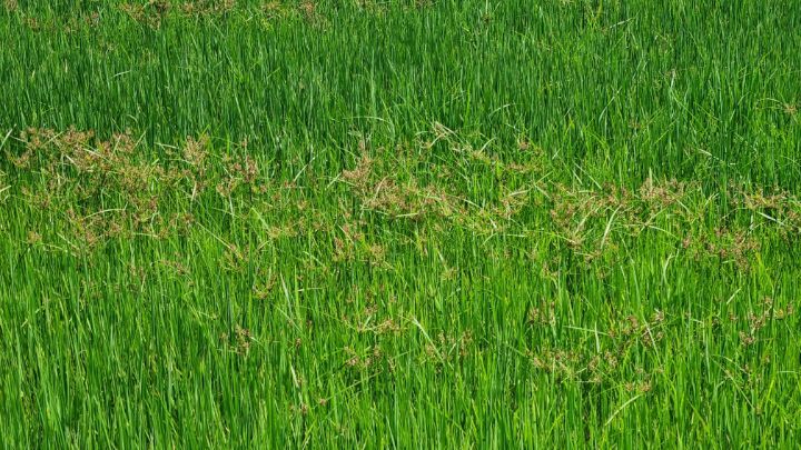 6. Barnyard grass is also growing in the rice field.