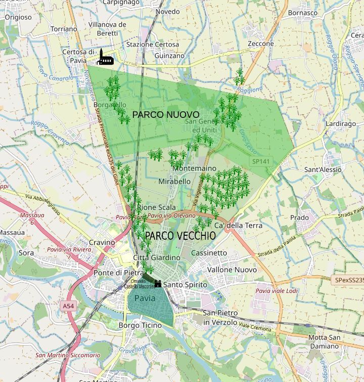 2. This park has been historically closely related to the monastery. Pavia is located at the southern end of this park.
