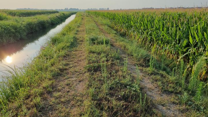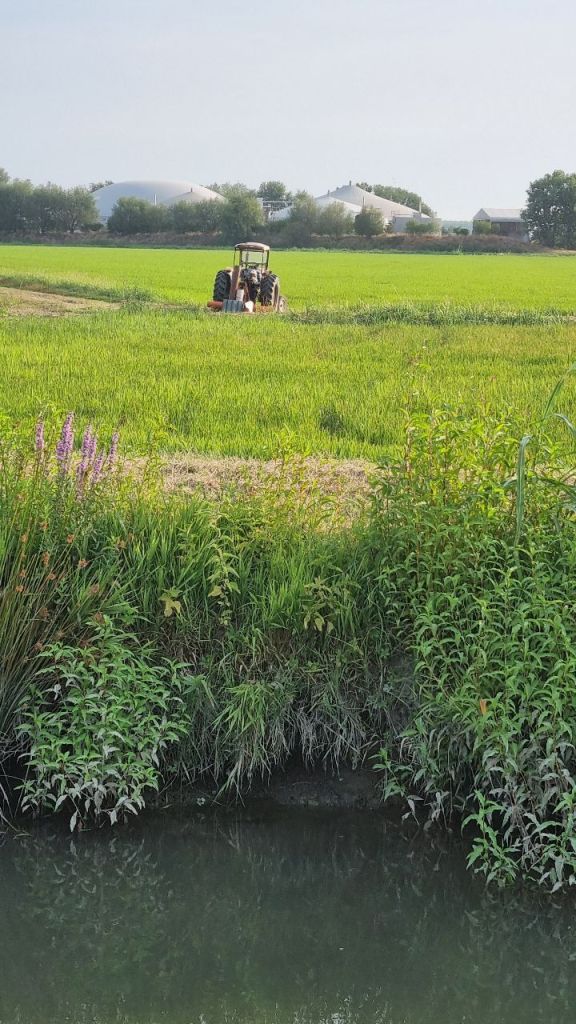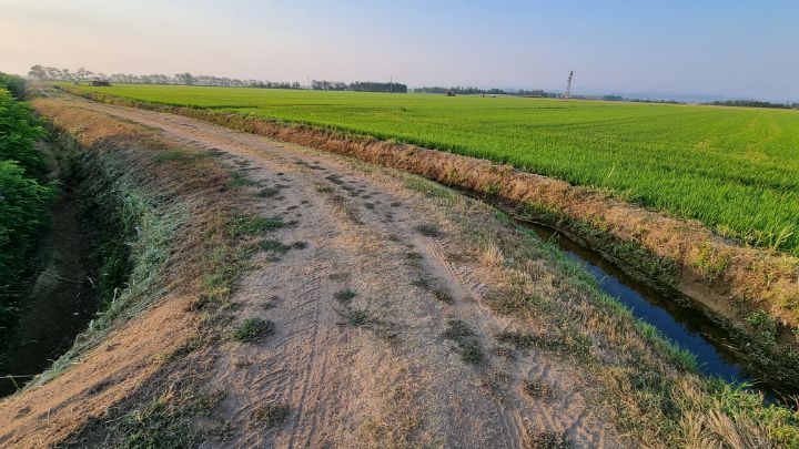 19. Large and small agricultural waterways are lined up on both sides of this road where large agricultural machinery go in and out.