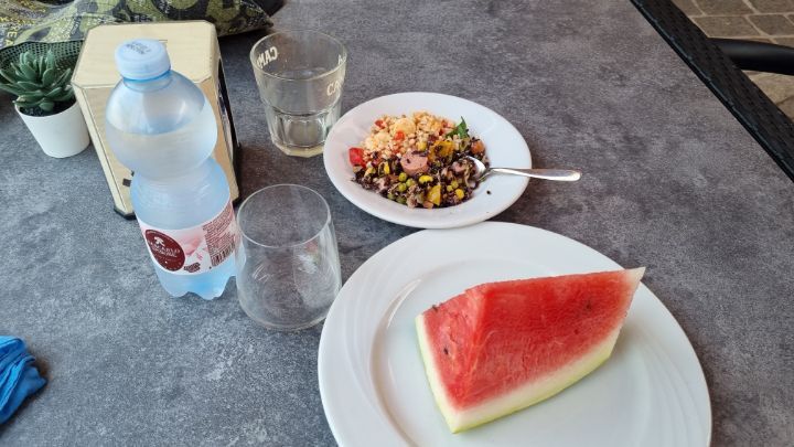 55. I drank fresh fruit orange juice and ordered watermelon,