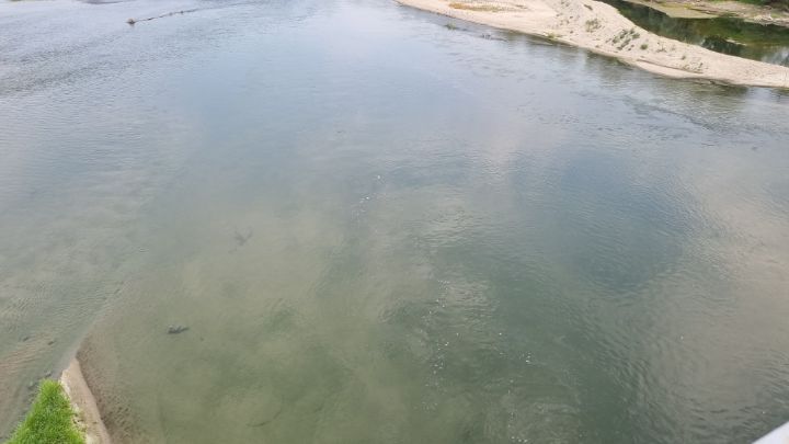74. The river flow has decreased so much. It is difficult to float a boat.
