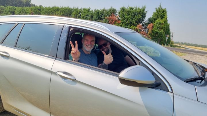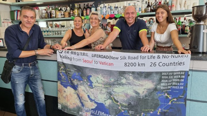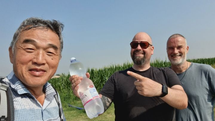 26. While I was doing so, a car was waiting for me. Travelers from the Netherlands were preparing cool bottles of water to cheer the K-traveler who was walking.