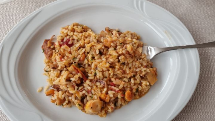 43. Seafood risotto for lunch.