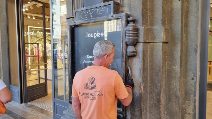 25. Worker removed the old dirt from the building. The fame of historical and cultural city should be supported by such efforts in maintenance.