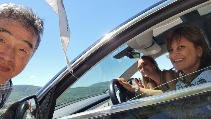 38. The mother and daughter give a warm pizza to K-traveler as a gift.