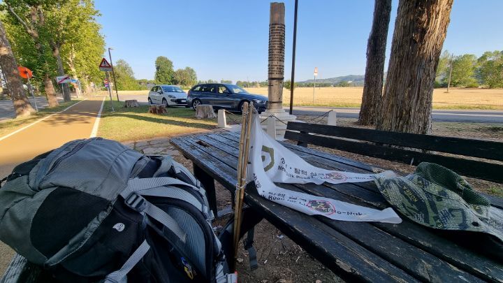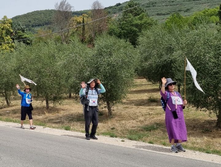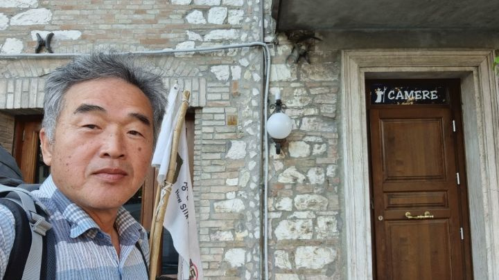 56. Soon, we arrive at Poligno where my lodging is located. I say goodbye to the Korean supporters here. We will walk together again when we enter Rome in a week or so.