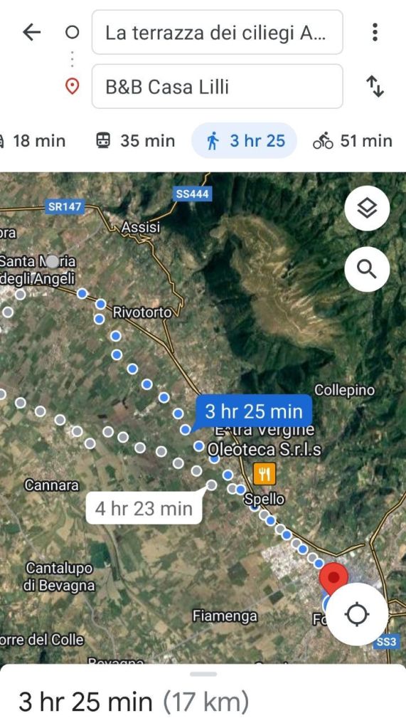 2. The first day’s course is 3 kilometers to Cathedral of St. Francis of Assisi in rest day. The second course is 17 kilometers to Foligno the next day.
