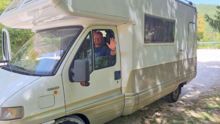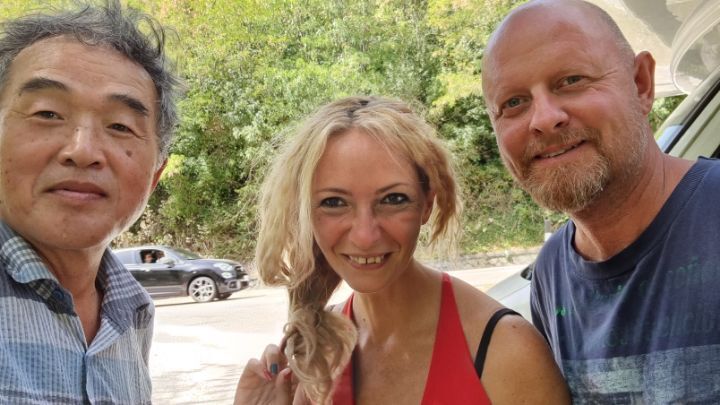 22. These people purposely parked car in a shady place and waited for me for a long while. They are traveling for two years with a camper as their home. Europe has such a culture to enjoy traveling. They give me bananas and drinks.