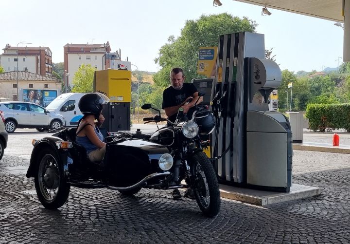 31. An old-fashioned motorcycle I saw at the gas station in the city of Terni where my lodging is. This is what I often saw in movies about World War II.