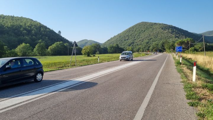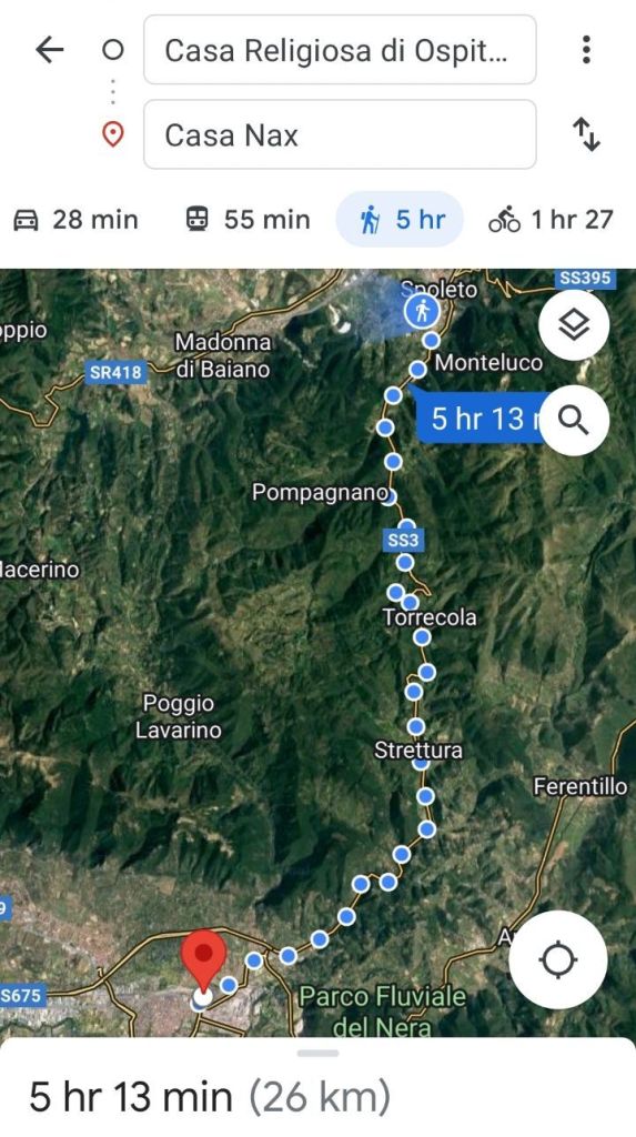 3. There are two roads going from Assisi to Rome. The arrow is pointing to a populous road which go through Foligno, Spoleto, and Terni. I walk along the road leading to Terni pass, which many people have walked for a long time.