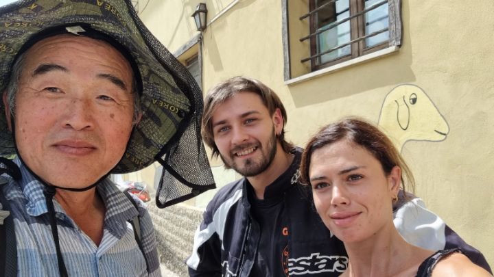25. A couple traveling on a motorcycle from Romania waited for me. I also tell the story of walking in Romania.