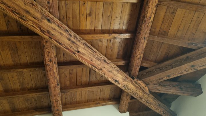 34. The room where I was guided into the lodging was very nice. The ceiling and floor were made of wood.