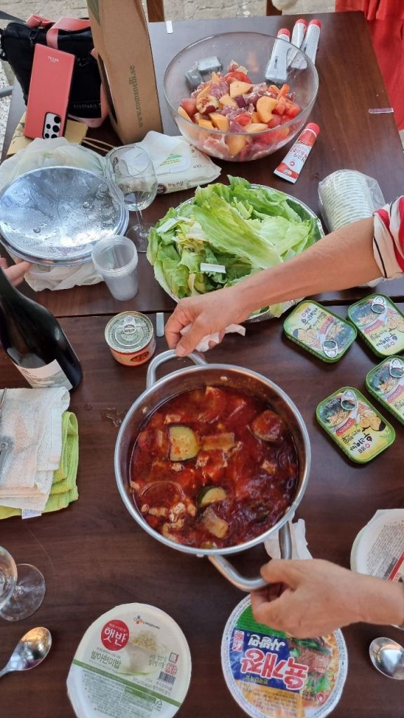 39. They prepared a great dish called beef stew. There are many other dishes. They came all the way here on purpose, staying in Orvieto’s lodging, 80 kilometers away. Cooking is one thing, to bring it far away is another difficult work.