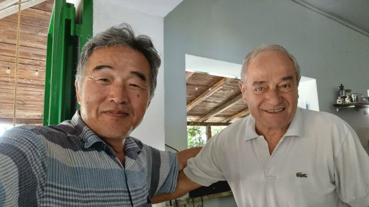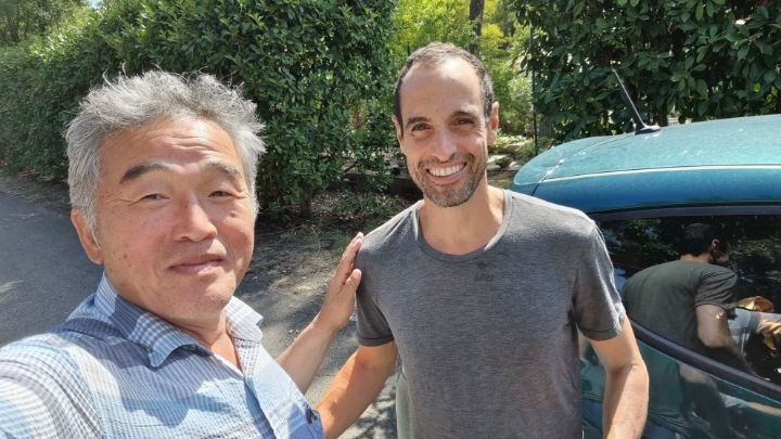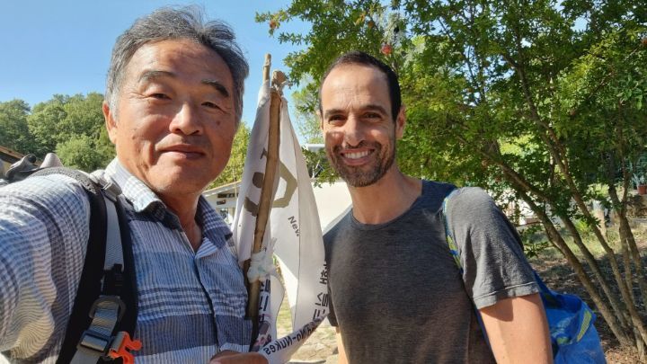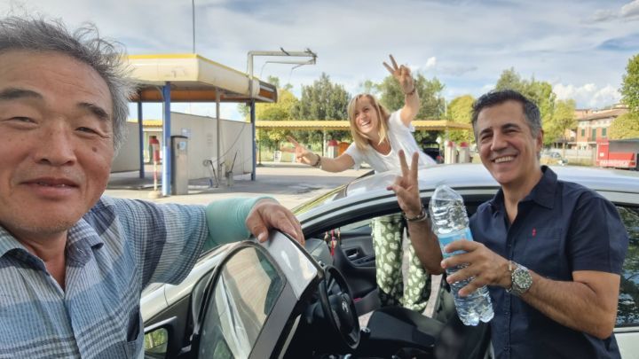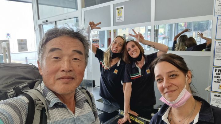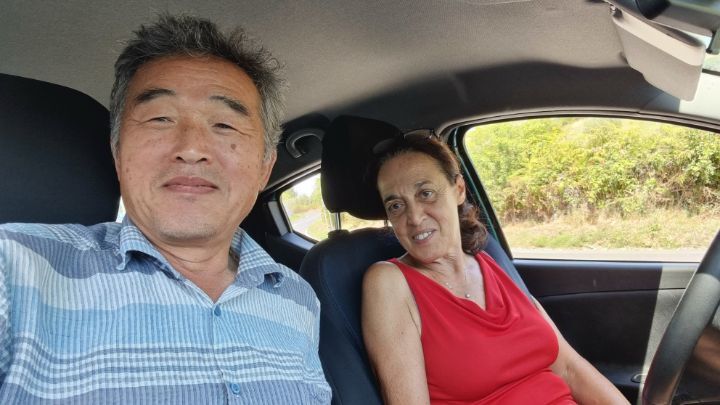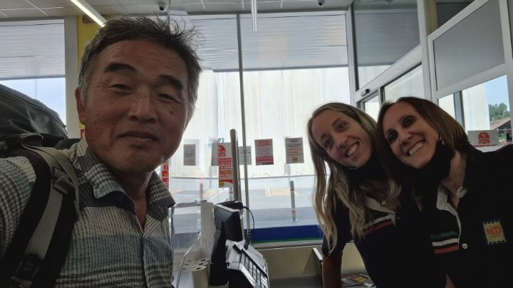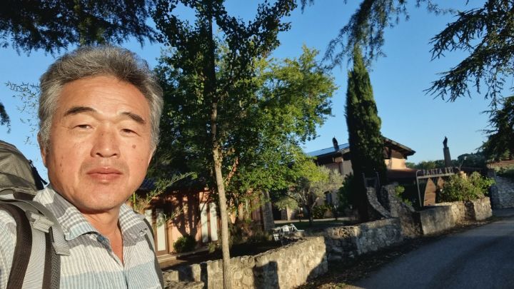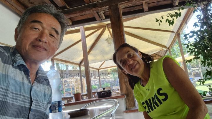 49. There is an open space and a bench to rest about 3 kilometers away from the lodging. I couldn’t arrive at the lodging until 5 o’clock because it was a long distance and there were many stories. This couple suddenly appears in a car, calling the K-traveler a celebrity, and asked to take a picture.